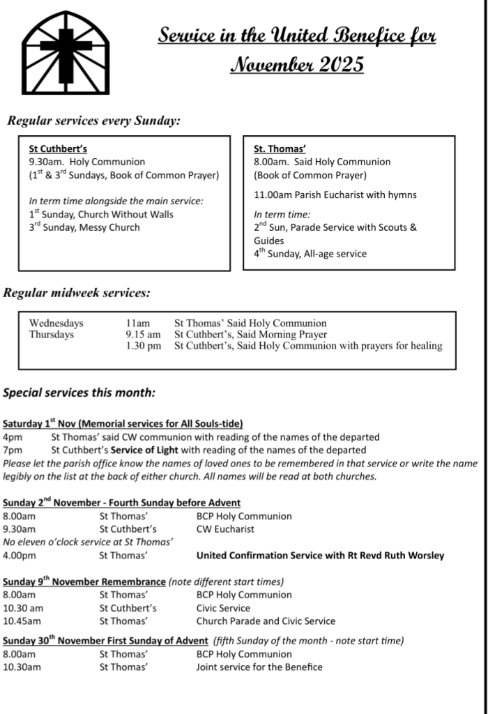 Services can also be found in the latest edition of Halsall News on our Church Archive page.